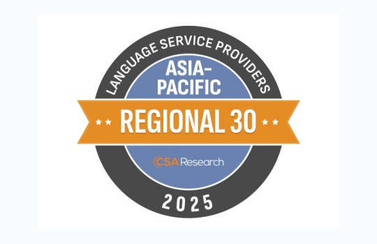 • 瑞科翻譯公司榮登 CSA Research 2025 年語言服務與技術行業亞太區域市場領導者榜單