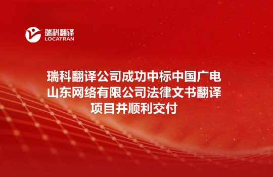 • 瑞科翻譯公司成功中標中國廣電山東網絡有限公司法律文書翻譯項目并順利交付